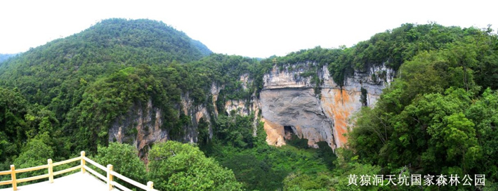 黄猄洞天坑国家森林公园地处广西西北部的百色市乐业县境内,隶属于广西国营雅长林场,2002年12月,国家林业局批准建立黄猄洞天坑国家森林公园,2003年10月1日黄猄洞天坑国家森林公园正式对外开放。公园内植被茂密、天坑奇特、高山险峻、民俗纯朴,是世界最大天坑群大石围天坑群的重要组成部分。