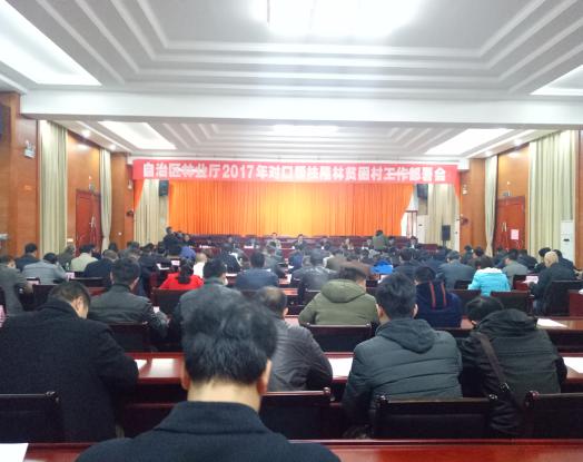 图为3月8日自治区林业厅2017年对口帮扶隆林贫困村工作部署会现场